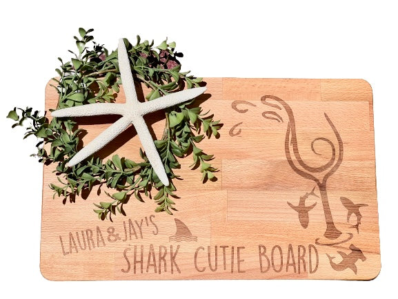 Make A Splash at your next gathering with this personalized Shark Cutie Board! Designed for charcuterie lovers who like their snacks with a side of fun, because lets be real most can't pronounce charcuterie after a few glasses of their favorite spirits.
